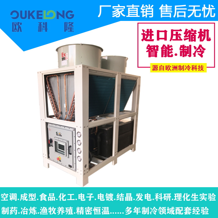 歐科隆20匹低溫防爆冷水機以安全、穩(wěn)定、高效為核心,適用于各類防爆環(huán)境,并提供定制化服務(wù),滿足不同工業(yè)需求。