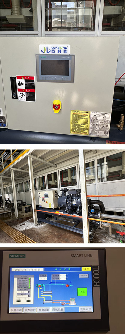 本案位于湖北十堰國(guó)企二汽某五金件廠大型電鍍生產(chǎn)線配套的水冷螺桿式冷水機(jī),二次購(gòu)買案例。